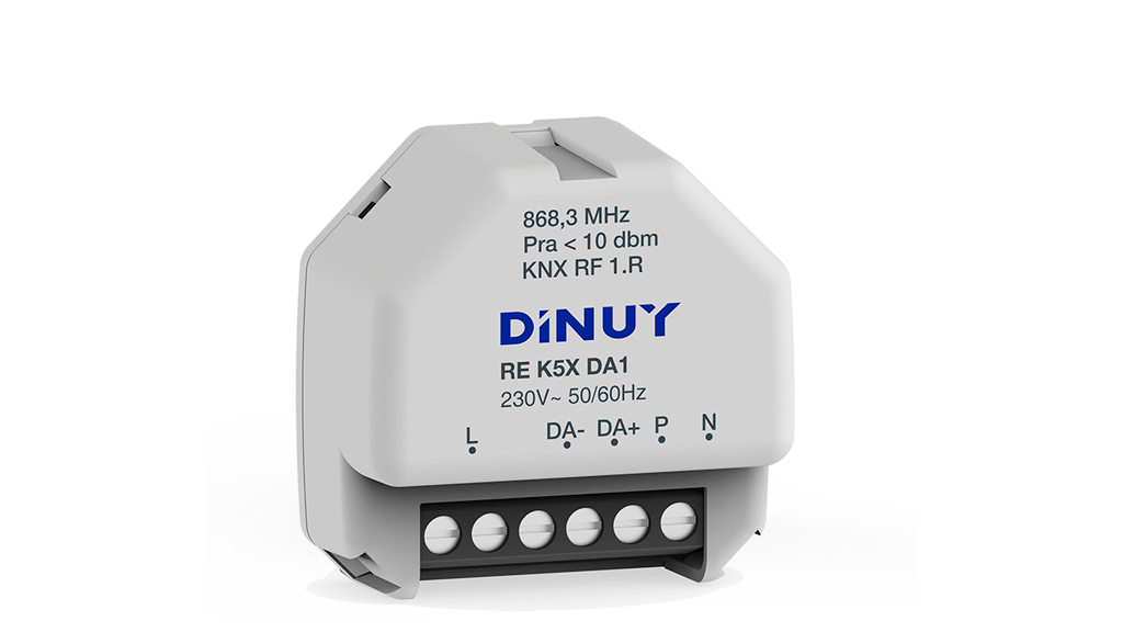 Der kompakte Funk-UP-Dimmaktor von Dinuy ermöglicht per KNX-Funk die Ansteuerung von bis zu 64 DALI-Treibern oder DALI-Leuchten. Der breite Funktionsumfang umfasst Soft-Ein/Aus per Rampe, Einstellung des minimalen/maximalen Dimmwerts, Dimmwert beim Einschalten, Treppenhauszeit mit und ohne Ausschaltvorwarnung sowie fünf Szenen. Das Modul lässt sich einfach installieren. Eine Adresszuweisung der DALI-Leuchten ist nicht notwendig.