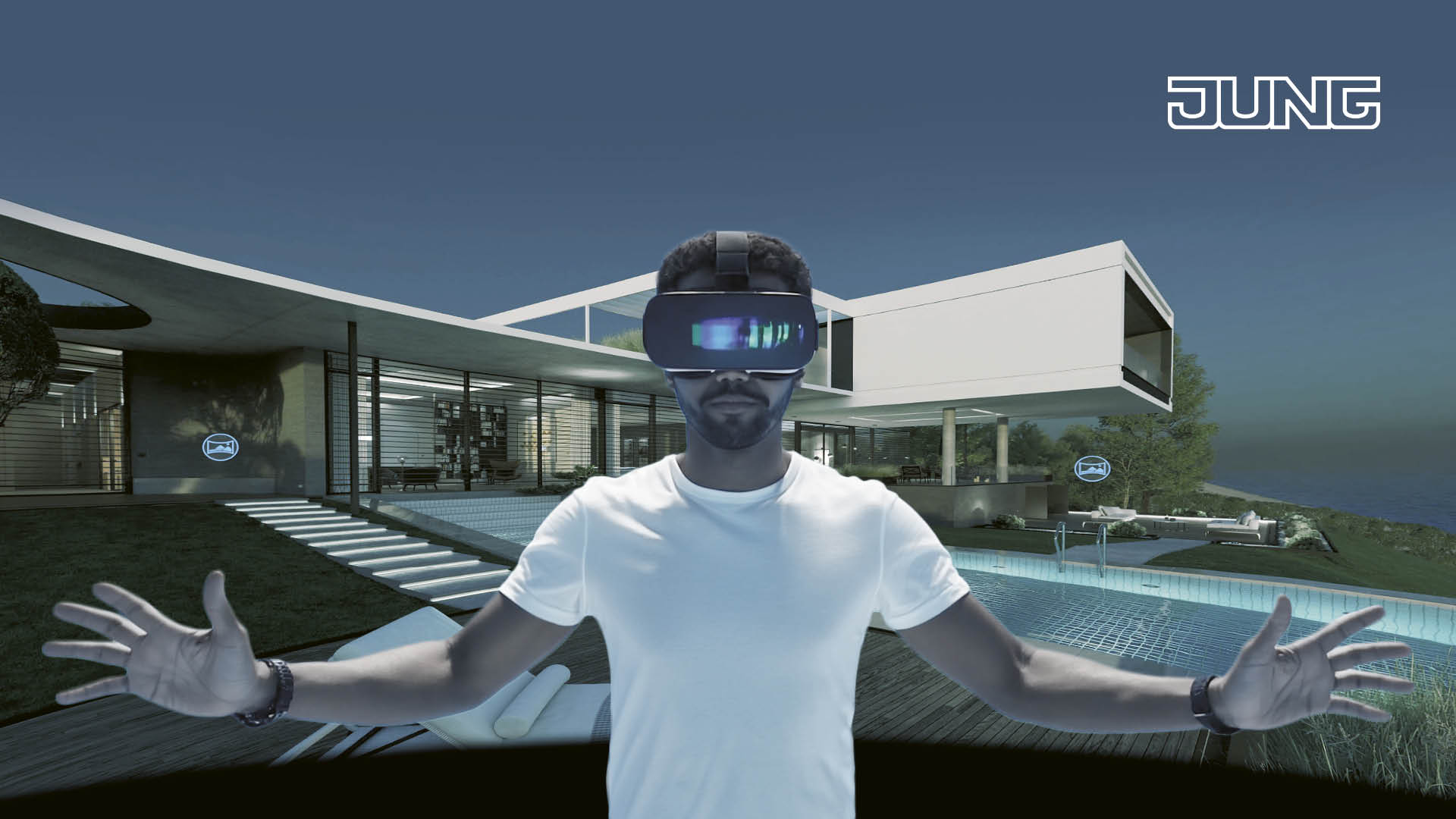 Interaktive Virtual-Reality-Szenarien mit begehbaren Räumen zeigen anschaulich, wie Lösungen von JUNG Komfort, Effizienz und Design ästhetisch und funktional verbinden. JUNG Virtual Solutions funktioniert klassisch am mobilen Gadget oder Rechner. Tipp: Mit einer VR-Brille wird das Erlebnis noch intensiver.