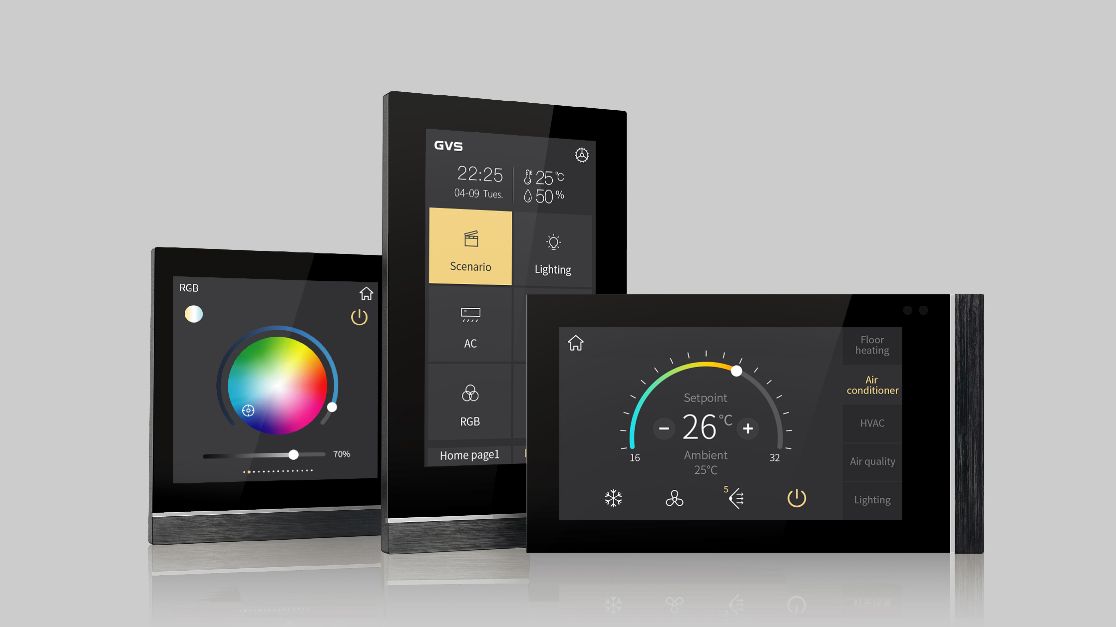 Das Touchpanel KNX Smart Touch V50 ist jetzt auch in horizontal erhältlich (Landscape-Orientierung). Die elegante IPS-Panel-Familie umfasst damit nun passend für alle Anwendungen zahlreiche Varianten: Mit 5-Zoll-Diagonale im Hoch- und Querformat (V50) sowie in 4,2-Zoll-Ausführung im Hochformat (V40), jeweils in Grau oder Schwarz. Alle Modelle stellen Echtfarben in hoher Auflösung dar und bieten alle KNX-Basisfunktionen – Beleuchtung, Rollladensteuerung, Heizung, Klima und Lüftung, RGBW-Steuerung und mehr.